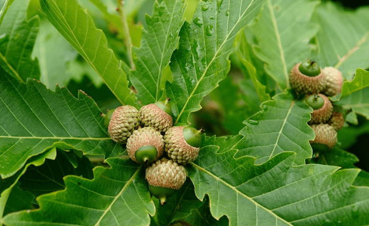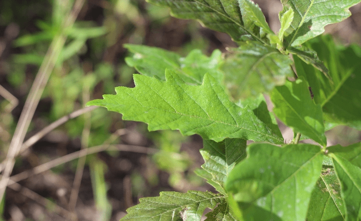ミズナラは日本の少し寒い地域に多い、冬に葉っぱが落ちる落葉広葉樹。寿命は500年以上で、稀に千年を超えるほど寿命が長いんです。ノコギリみたいなギザギザした大きな葉っぱの見た目で、観葉植物としても可愛らしく、美しい木目の家具として将来皆さんの暮らしを楽しませてくれます。